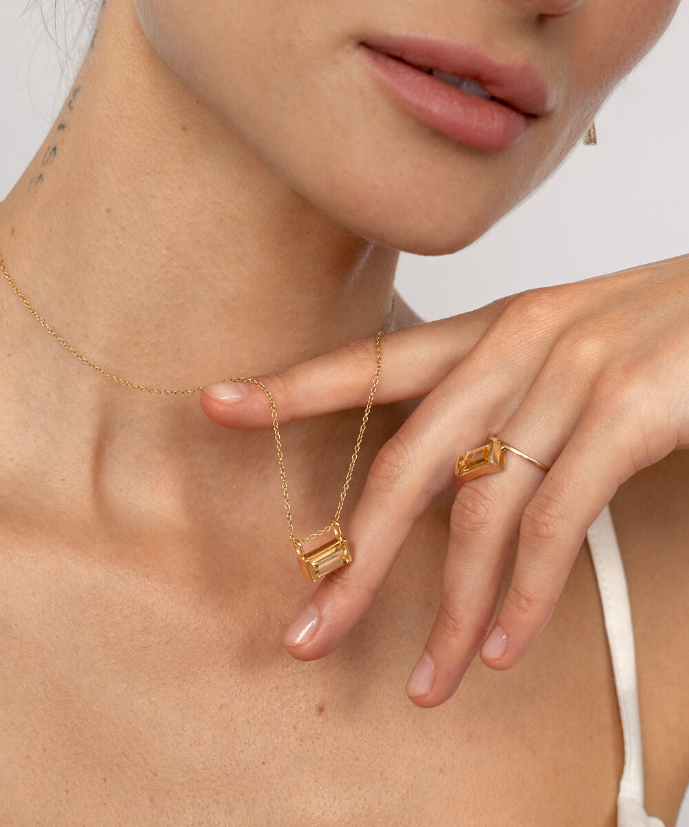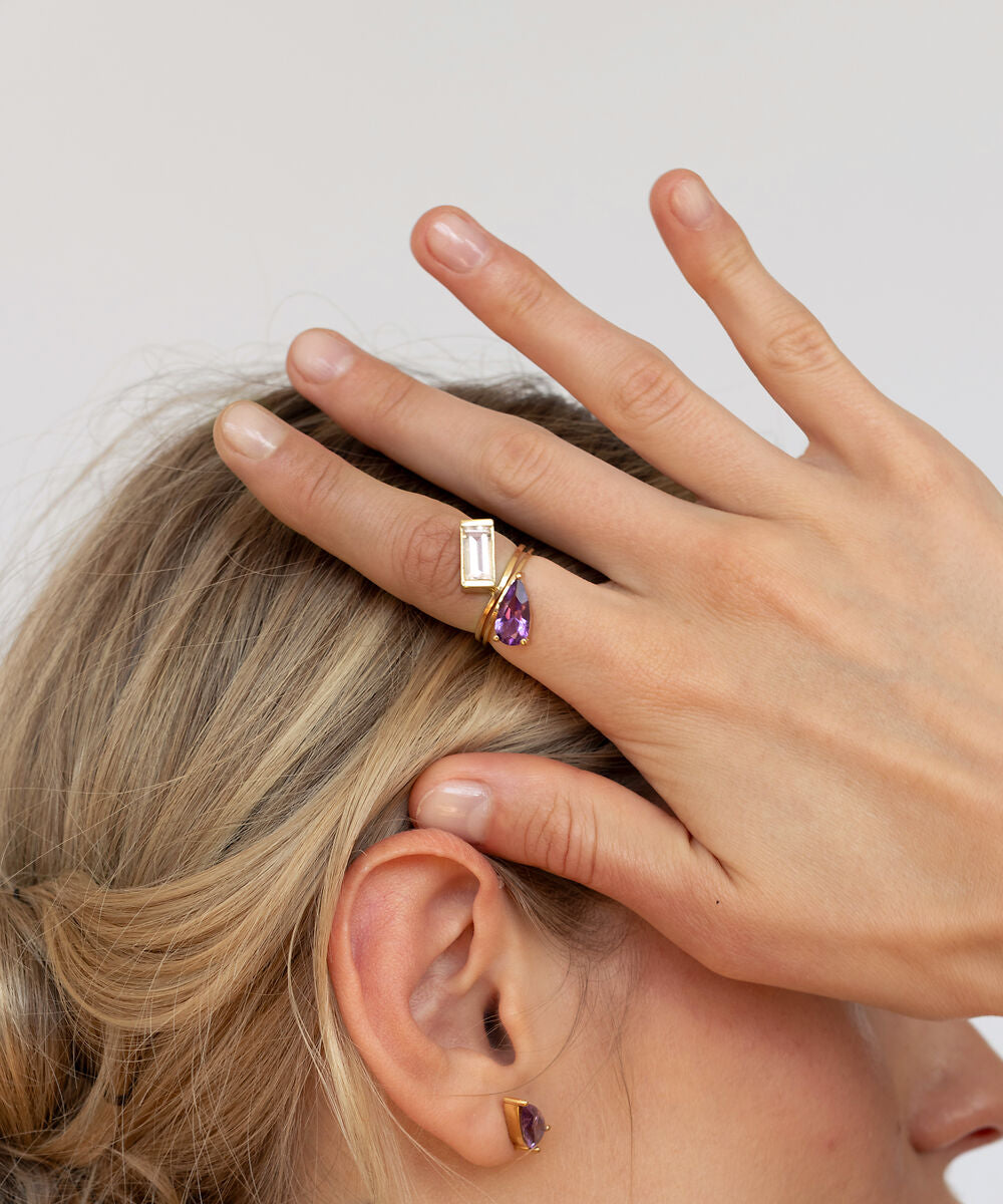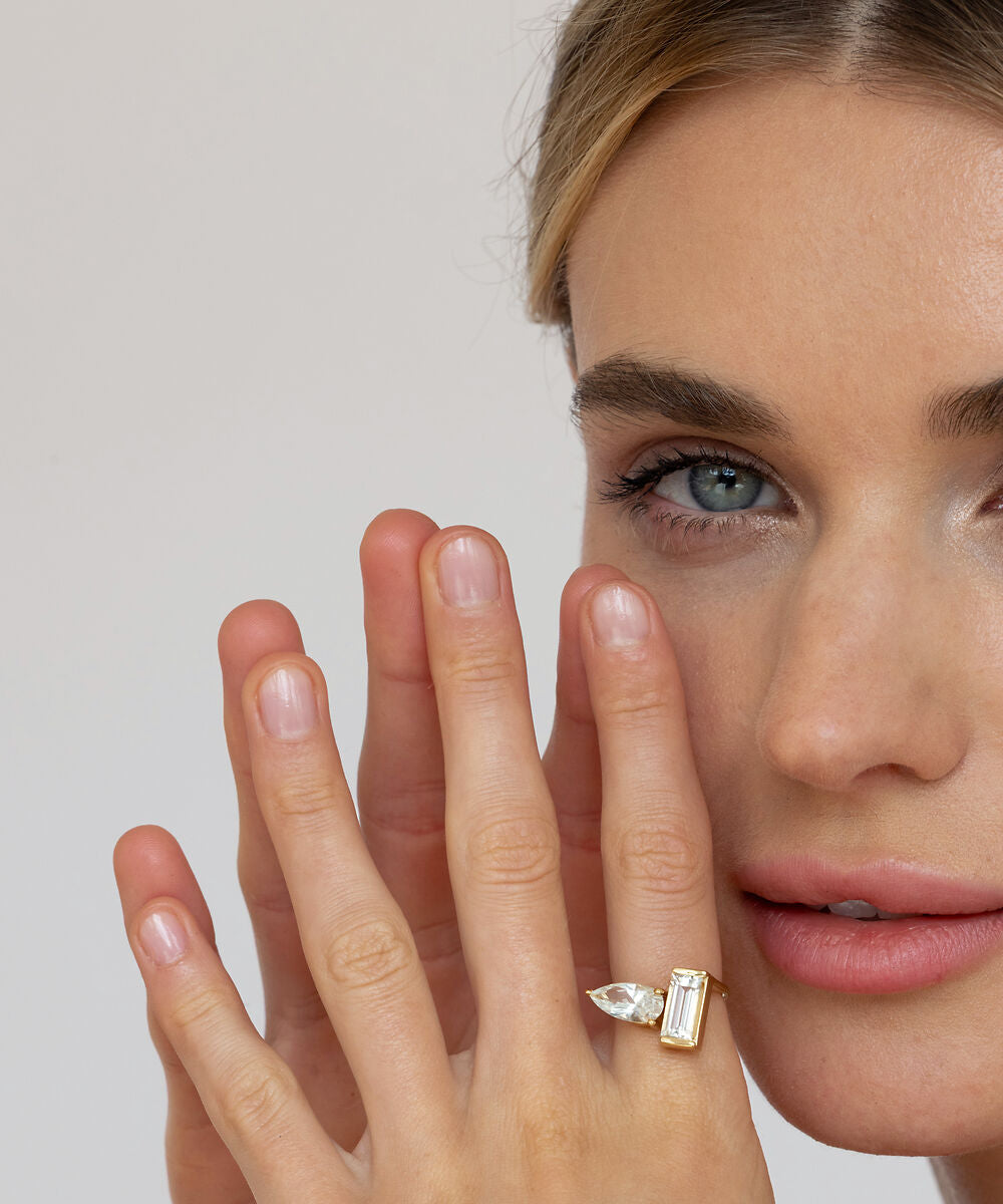 Markante Edelsteine. Klare Formen, inspiriert von Gegensätzen: ruhiger Futurismus trifft auf klassisches Gold. Tradition, neu gedacht.