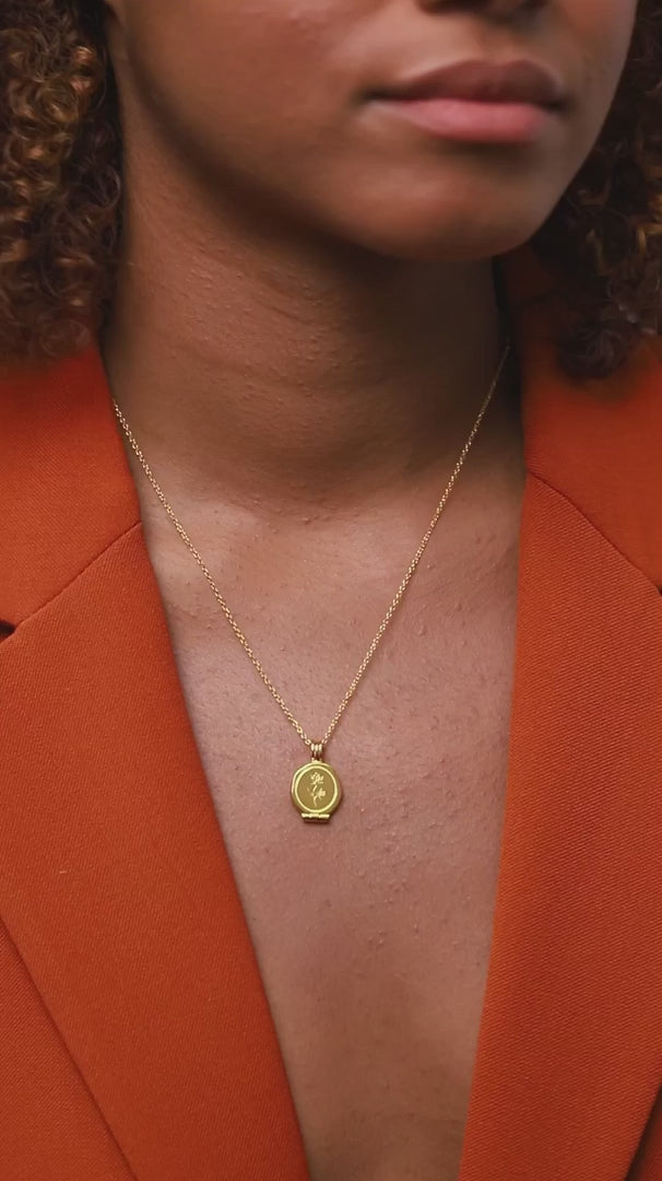 Es gibt einen Grund dafür, dass niemand einem hübschen Medaillon widerstehen kann. Unsere Seal Lockets sind inspiriert von unserem Bestseller, der wiederum einer Wachssiegelform nachempfunden ist. Füge deinem neuen Schmuckstück eine ganz besondere Note zu, indem du ein Zitat auf der Innenseite eingravieren lässt und eines von fünf Designs auswählst. Dieses Schmuckstück wird direkt für dich angefertigt, nachdem du es bestellt hast, sodass keine Ressourcen ohne klaren Zweck verwendet werden.